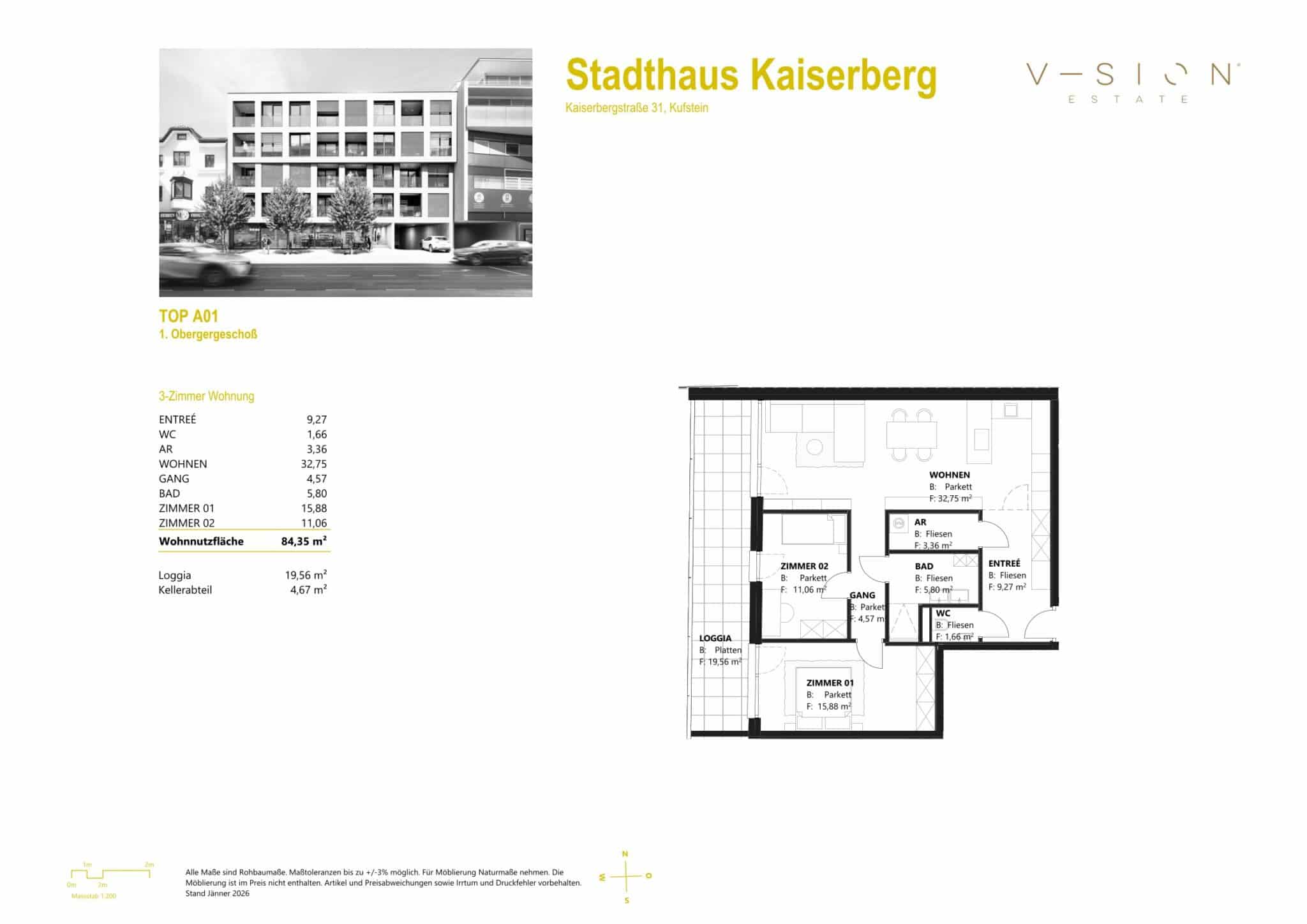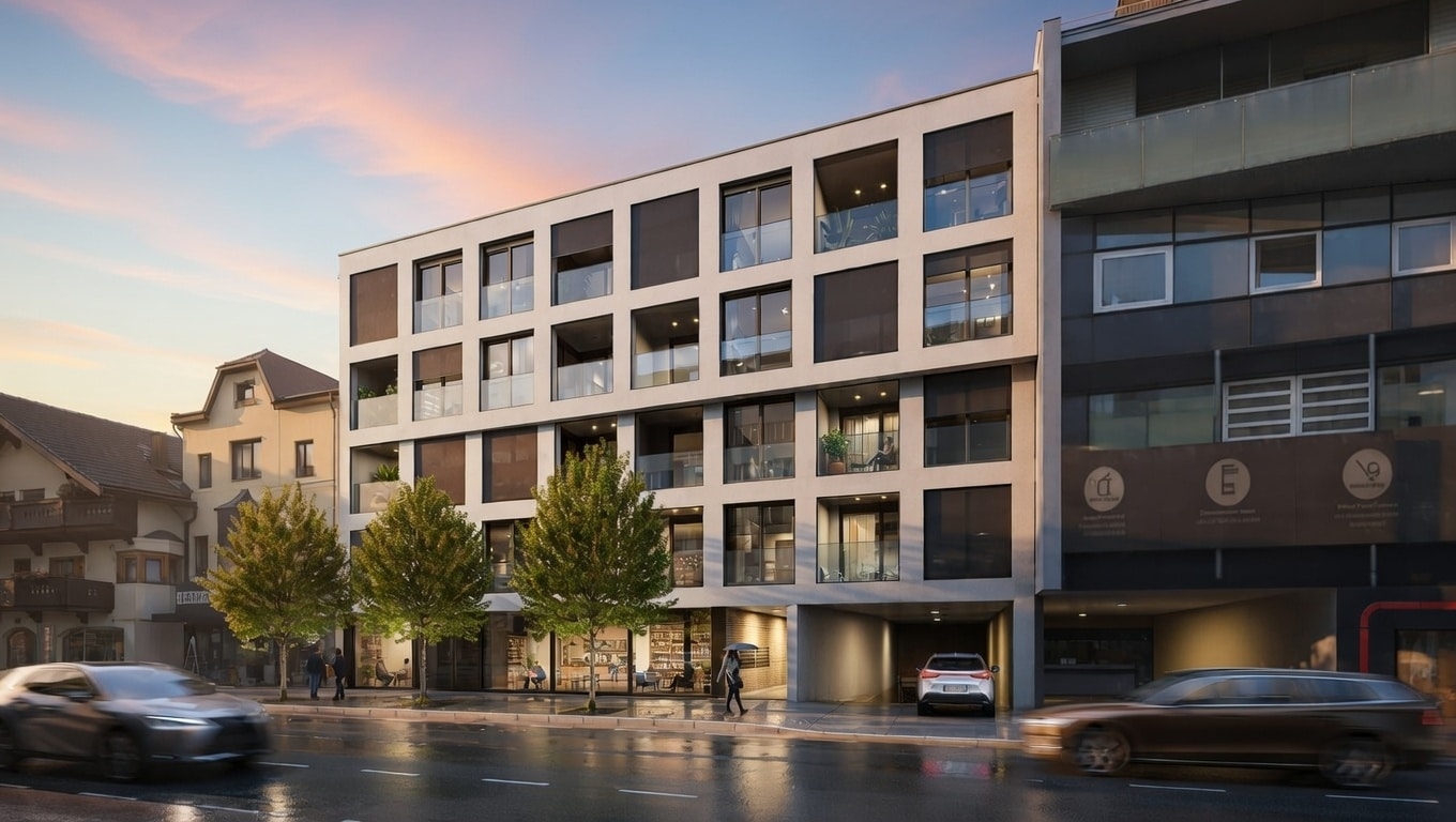 klare Gestaltung, hohe Qualität und nachhaltige Wertigkeit. Das Stadthaus öffnet sich selbstbewusst zur Kaiserbergstraße und spiegelt das lebendige Stadtgefühl Kufsteins wider.